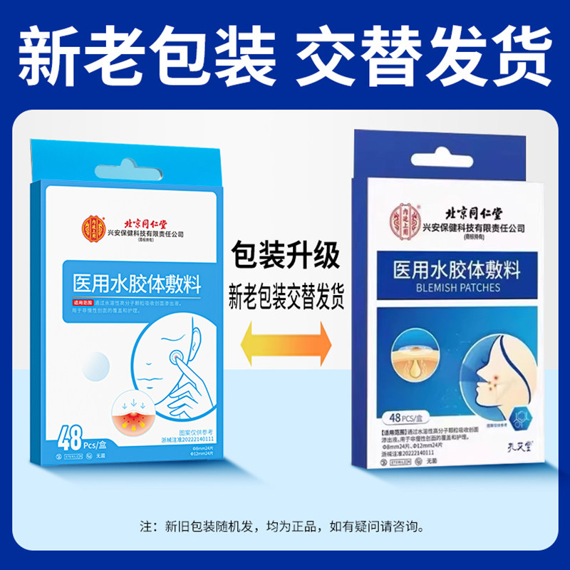 北京同仁堂医用痘痘贴修复痘印消炎医用水胶体敷料人工皮祛痘吸脓