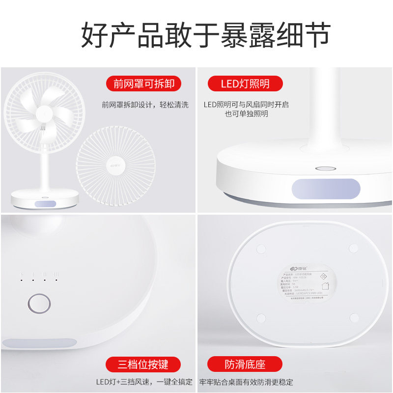 康铭电风扇家用台式大风力台扇学生宿舍办公室桌面充电小电扇强力
