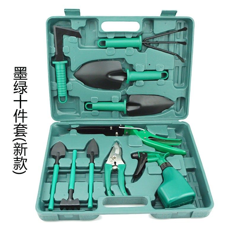 现货绿色十件套园艺工具套装花园用具铲耙锹剪喷壶多用园林用品