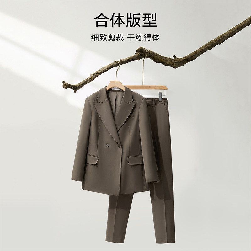 乔妮塔女装2025春秋新款50%羊毛含量高级感双排扣西服小西装外套