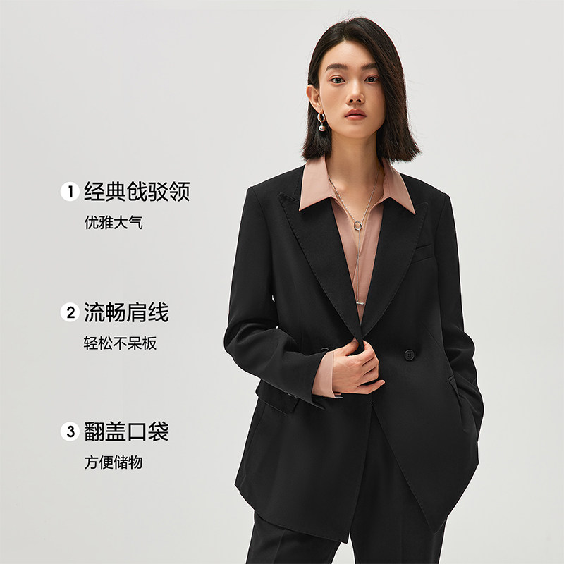 Eland衣恋西装女时尚双排扣休闲通勤外套2025冬季新款