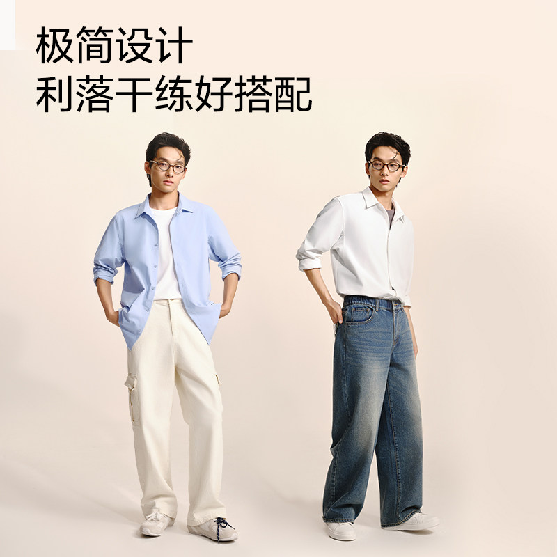 网易严选男士多功能温控衬衫2025年抗皱纯棉长袖衬衣宽松百搭上衣