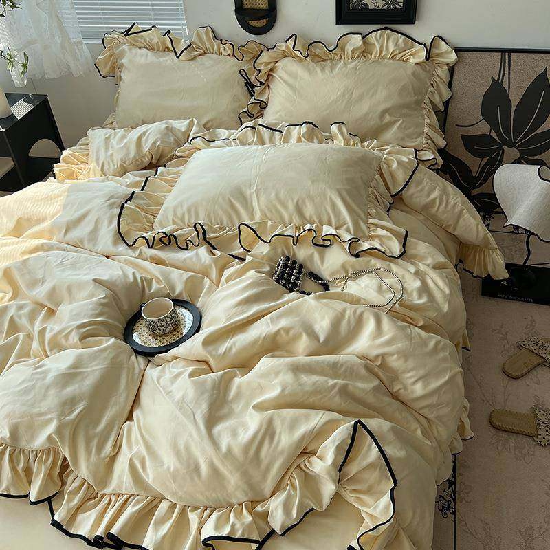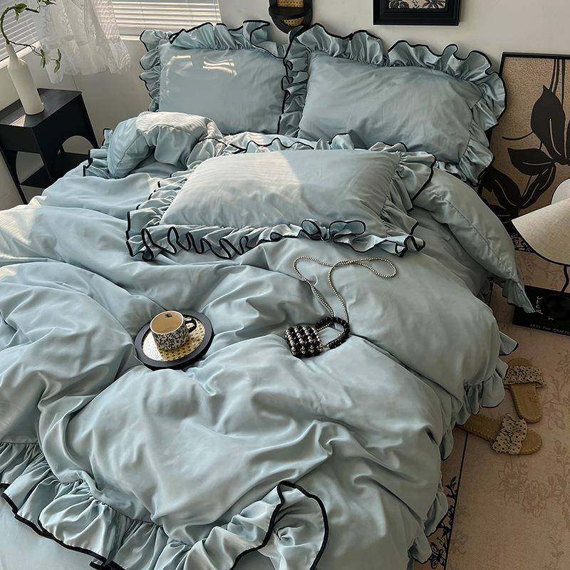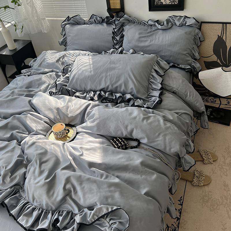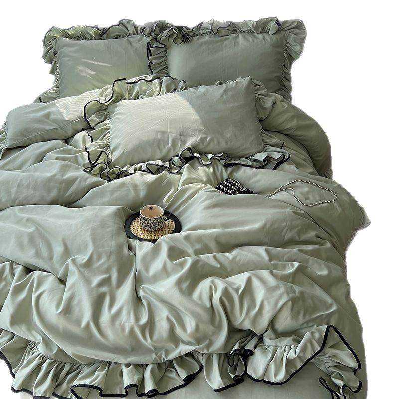 韩式公主风夏季冰丝床上四件套轻奢丝滑裸睡床单被套水洗真丝凉感