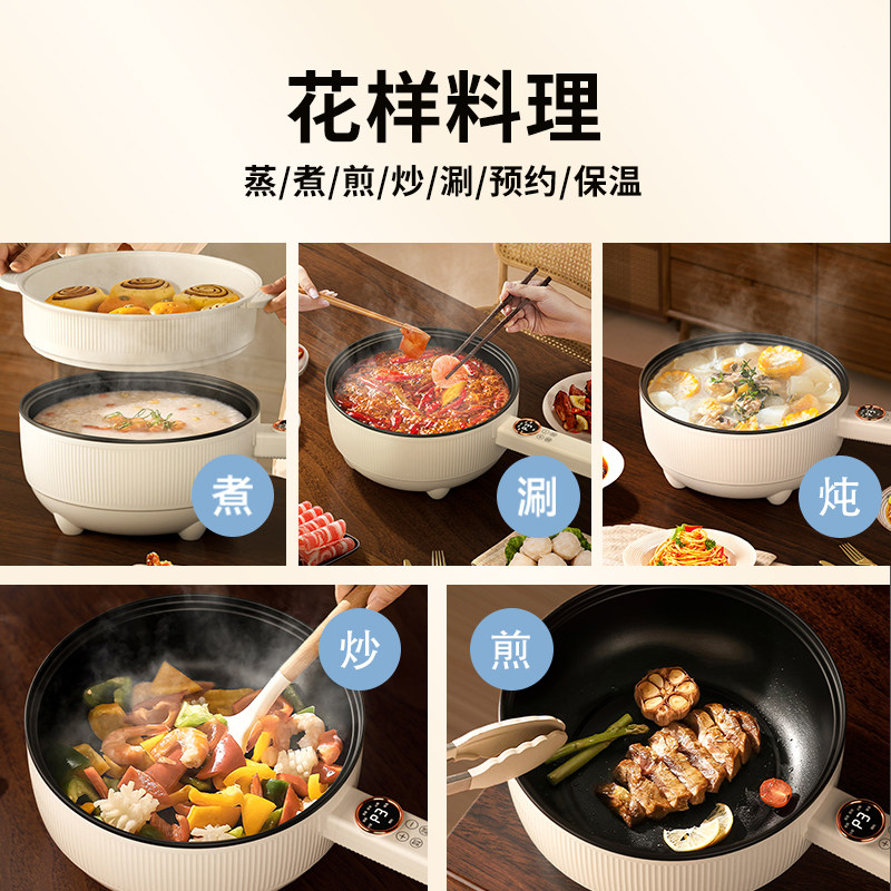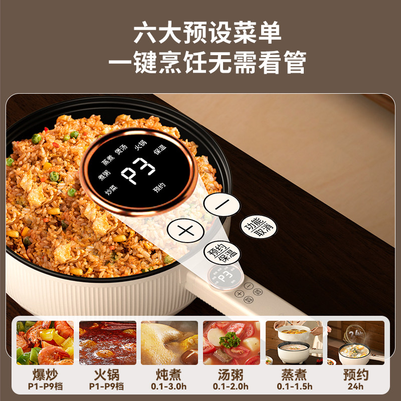 电炒菜炒锅电煮锅家用一体多功能火锅学生宿舍小型蒸煮煎炒不粘锅