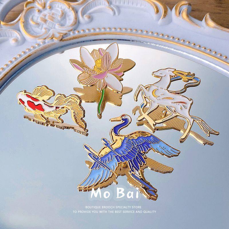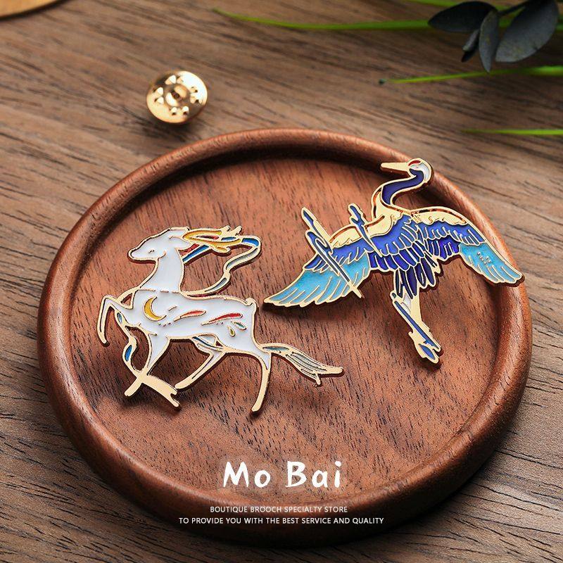 复古中国风国潮胸针仙鹤神鹿锦鲤徽章创意包包背包装饰品配饰胸章