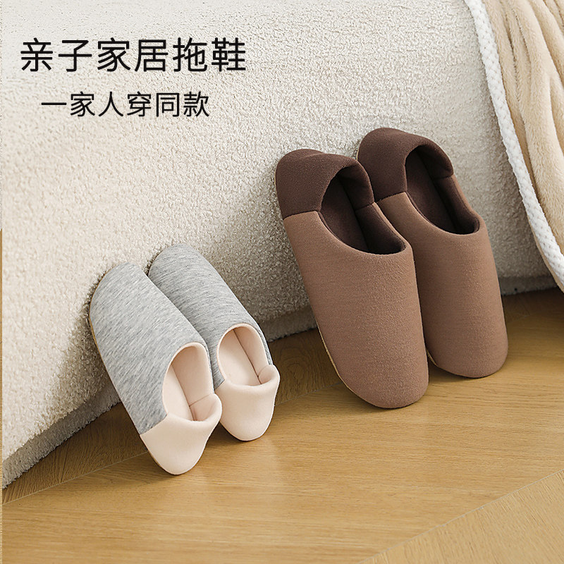 亲子月子鞋儿童静音无声家用日式软底棉拖鞋女包跟秋冬季木地板男