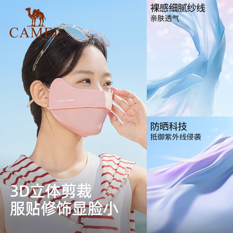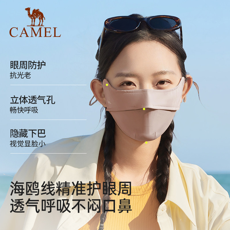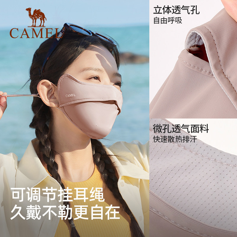 骆驼户外夏季冰丝防晒口罩女防紫外线透气护眼角3D防晒面罩薄款