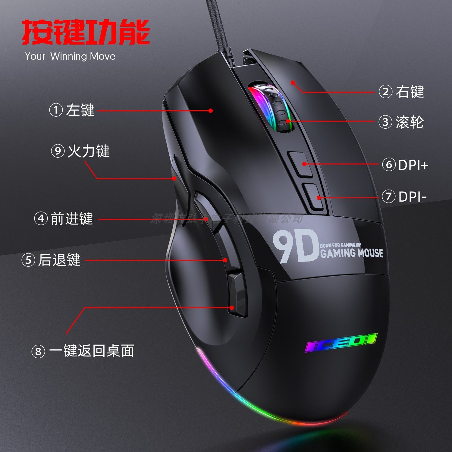 冰典9键有线鼠标10键硬件宏编程网吧电竞梦幻问道大话魔兽宏鼠标