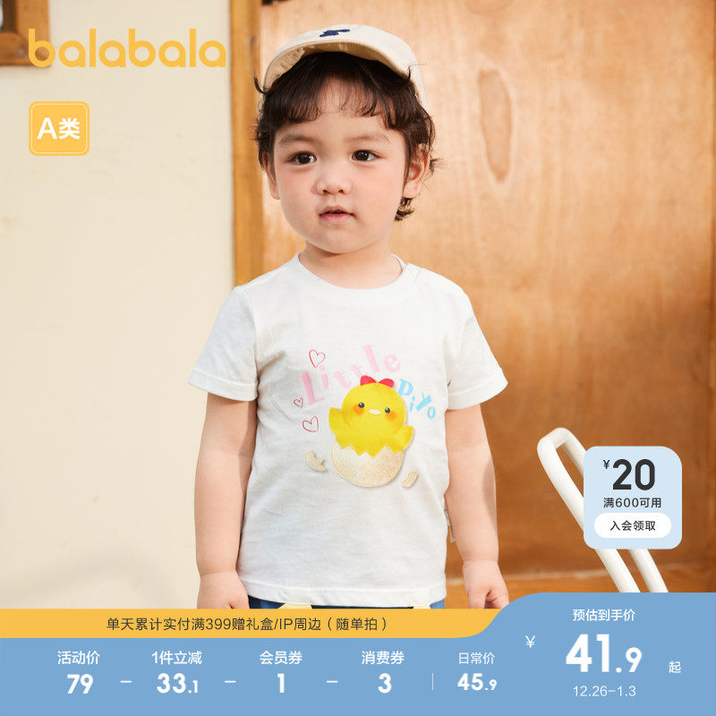 巴拉巴拉婴儿t恤宝宝上衣女童衣服男童短袖夏装趣味印花可爱洋气