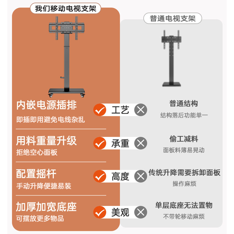可移动电视机落地式支架横竖屏旋转直播会议投屏通用挂架带轮推车
