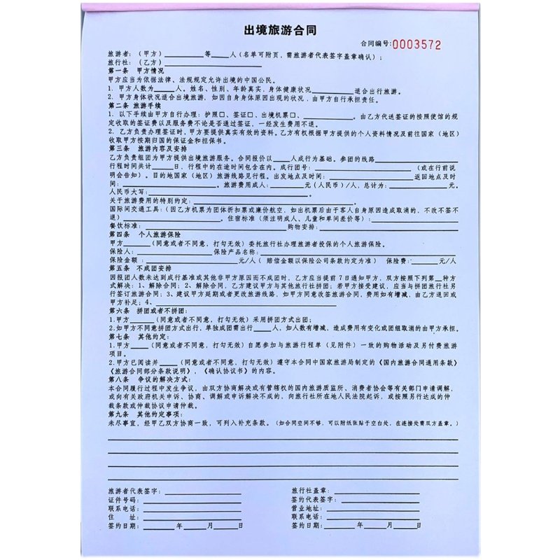 包邮通用旅行社出境国内旅游合同国内外旅游合同协议境外旅可定做
