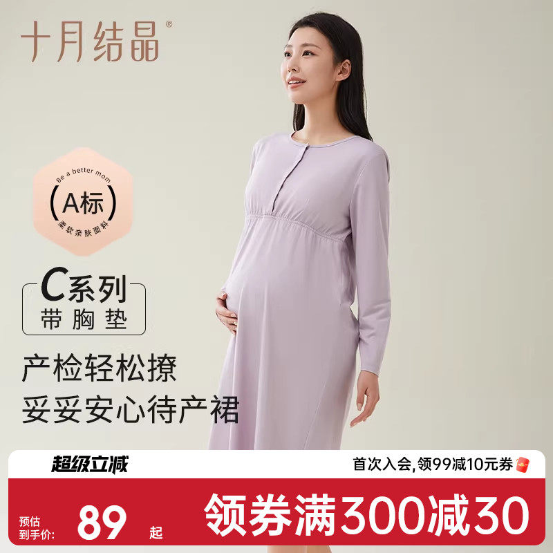 十月结晶孕妇睡裙胸垫纯棉月子哺乳待产连衣裙长袖吊带背心春秋季