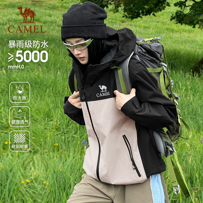 骆驼户外硬壳单层冲锋衣女2026年防暴雨拼色骑行旅游登山服外套男