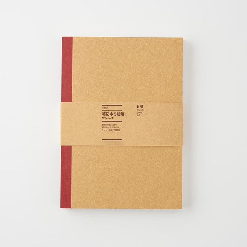 无印良品MUJI书写纸笔记本5册组 顺滑学生文具8mm横线30张 B5 5册