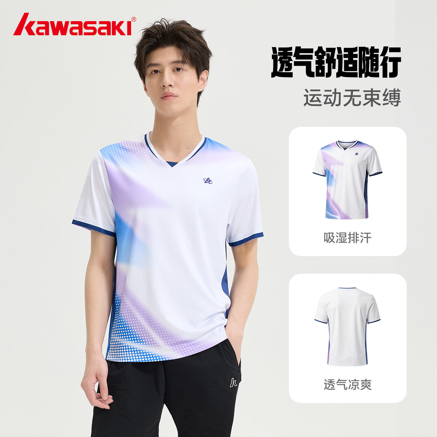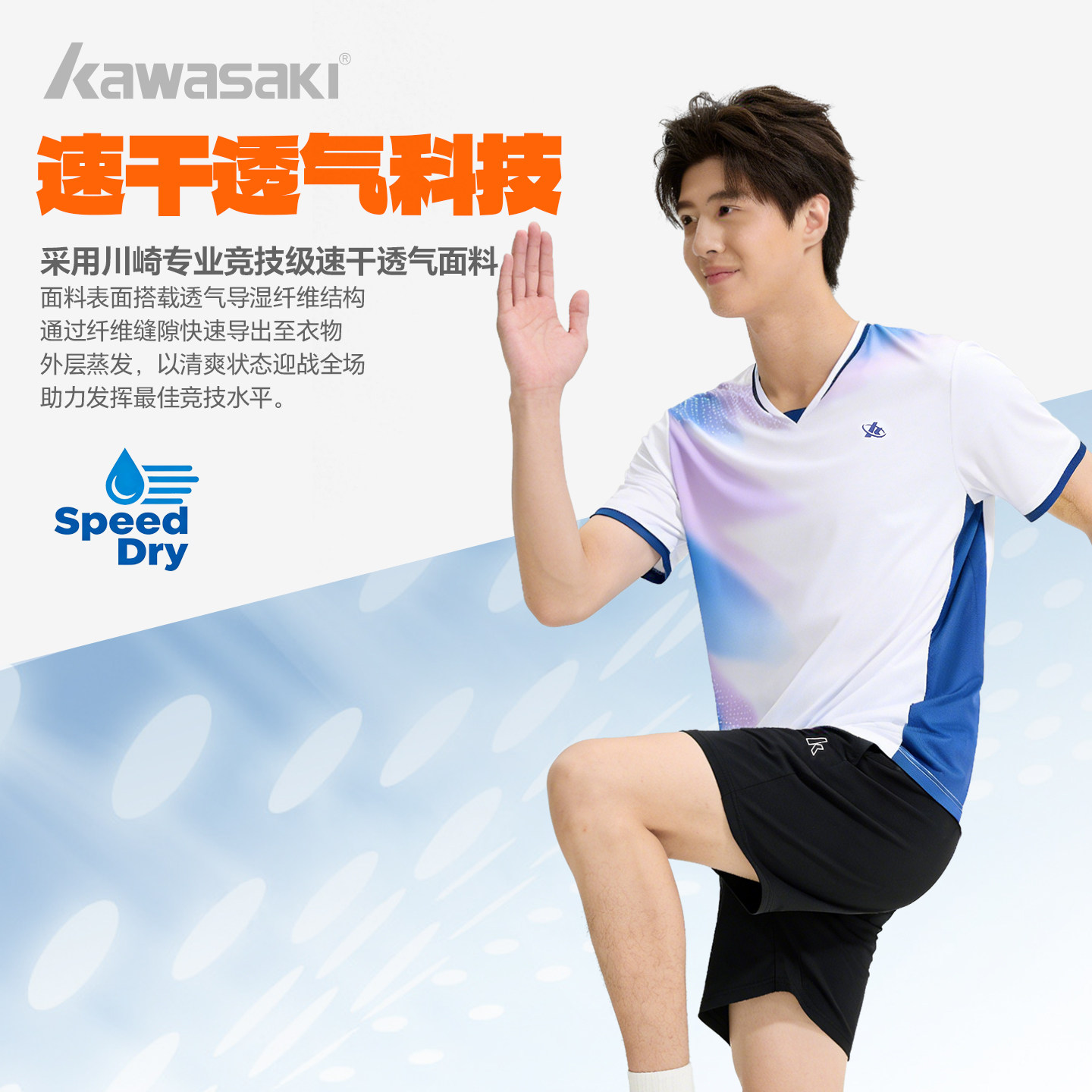 川崎kawasaki羽毛大赛球服专业轻薄速干男款短袖短裤运动套装T恤