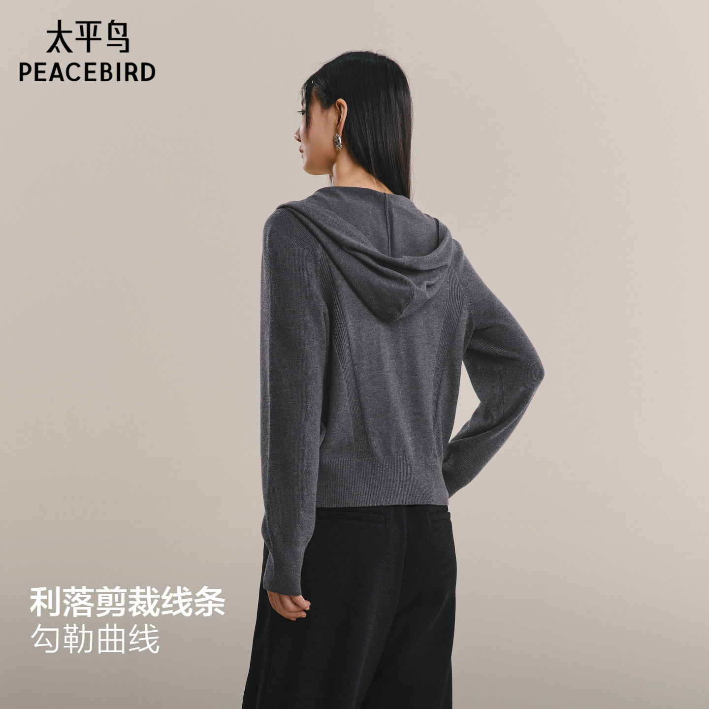 【商场同款】太平鸟垫肩式连帽开衫25冬新款合体针织衫A1EDF4260