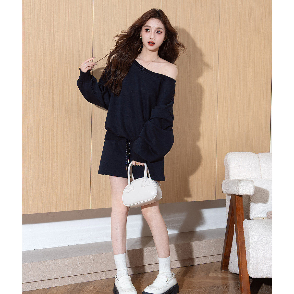 唐狮夏季新款女套装长袖收腰绑带韩系甜酷斜肩百搭时尚休闲约会tu