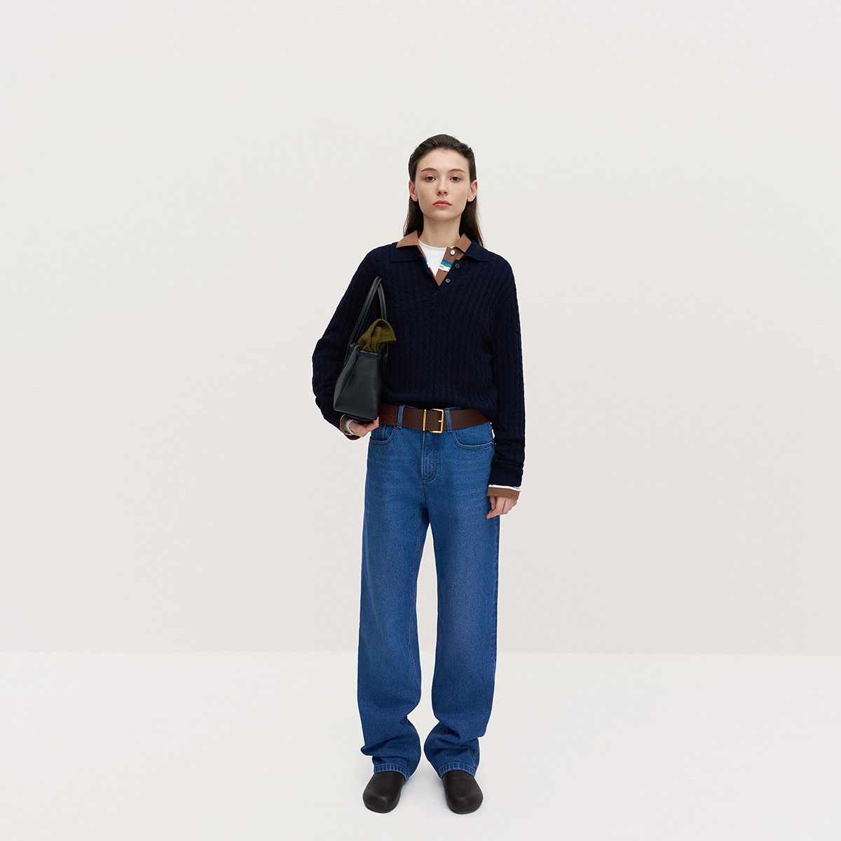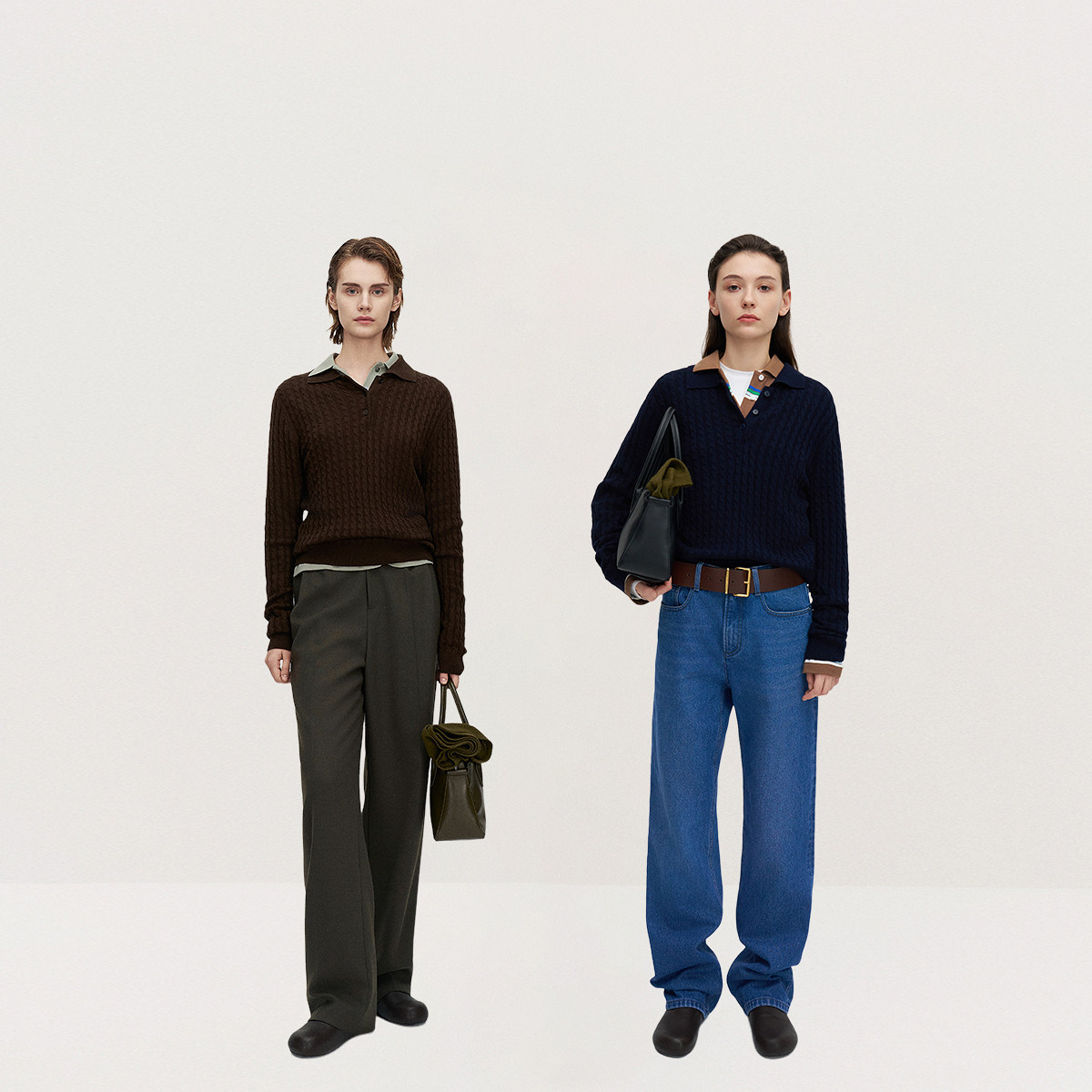 【季末折扣】欧时力 100%羊毛老钱麻花polo毛衣轻薄针织秋冬新品