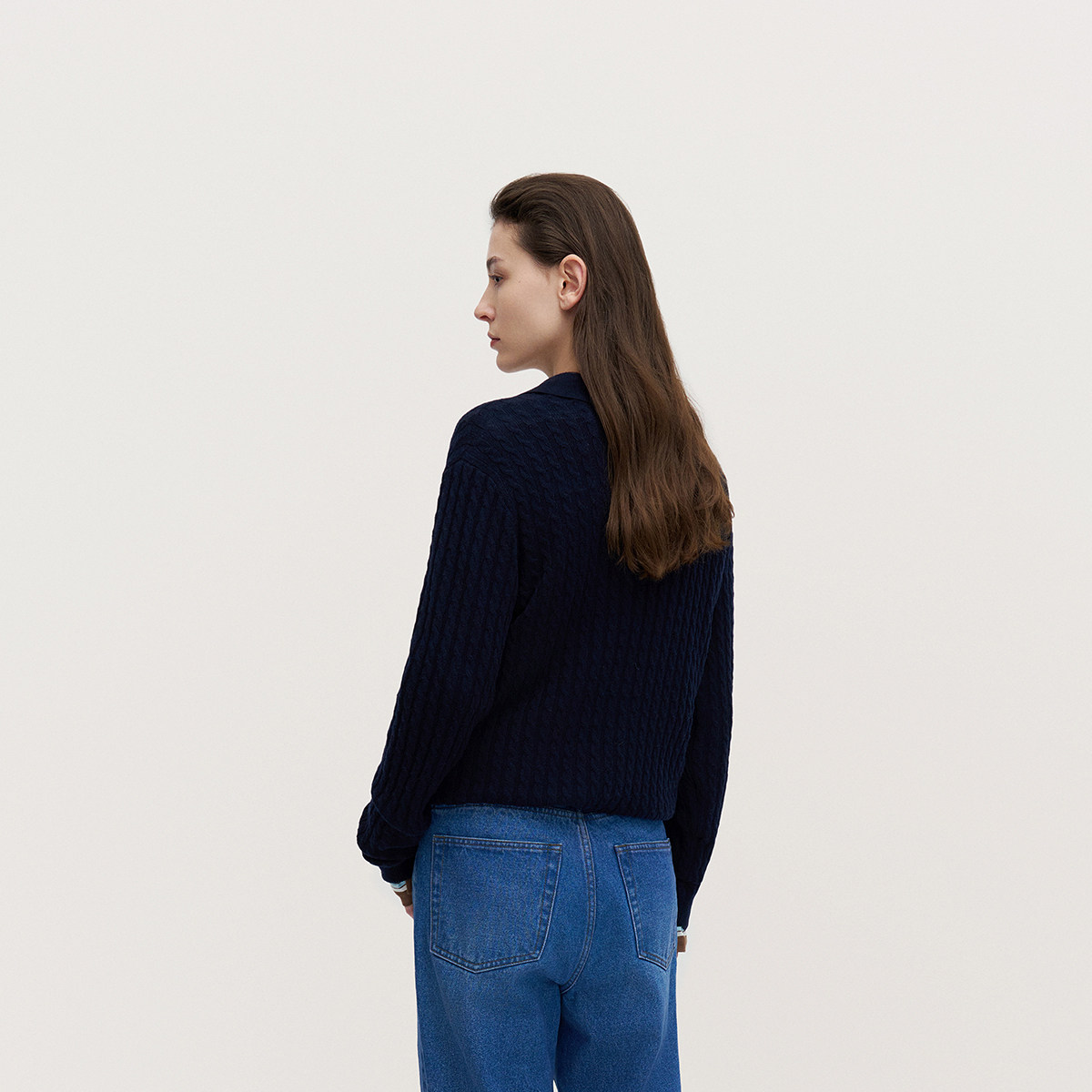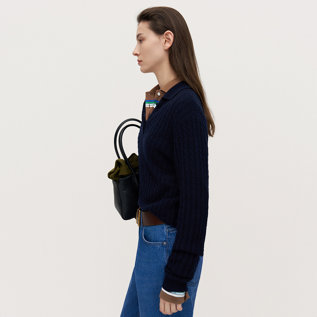 NVPVVA 秋冬新款学院风慵懒翻领绞花毛衣麻花宽松套头LOGO针织衫
