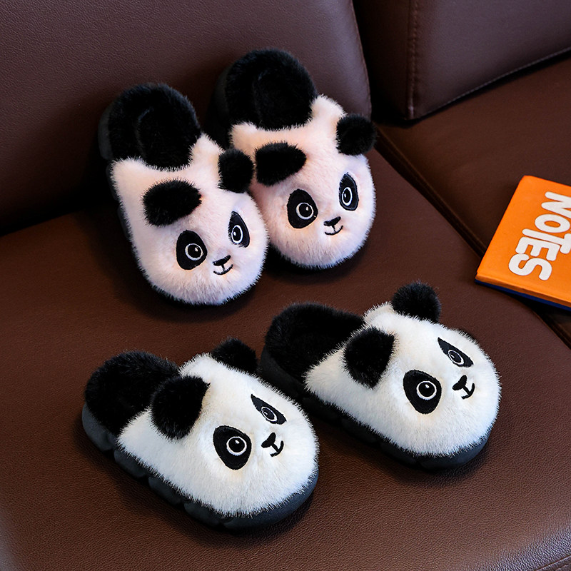儿童棉拖鞋秋冬季男童女童软底室内居家宝宝男孩保暖拖鞋熊猫卡通
