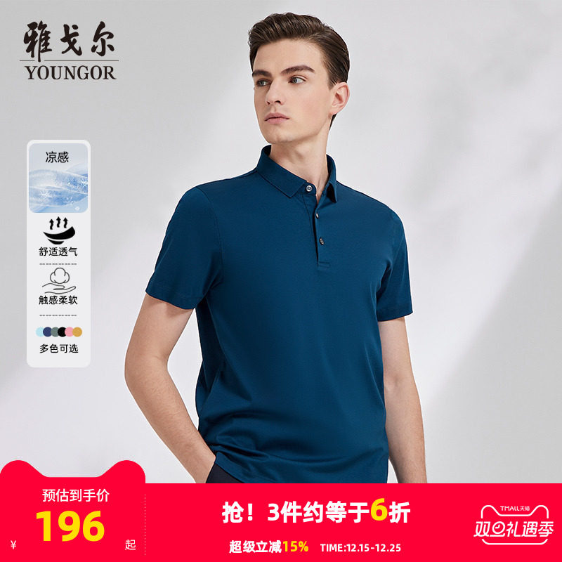 【凉感透气】雅戈尔男士夏季短袖T恤商务休闲翻领纯色棉polo衫