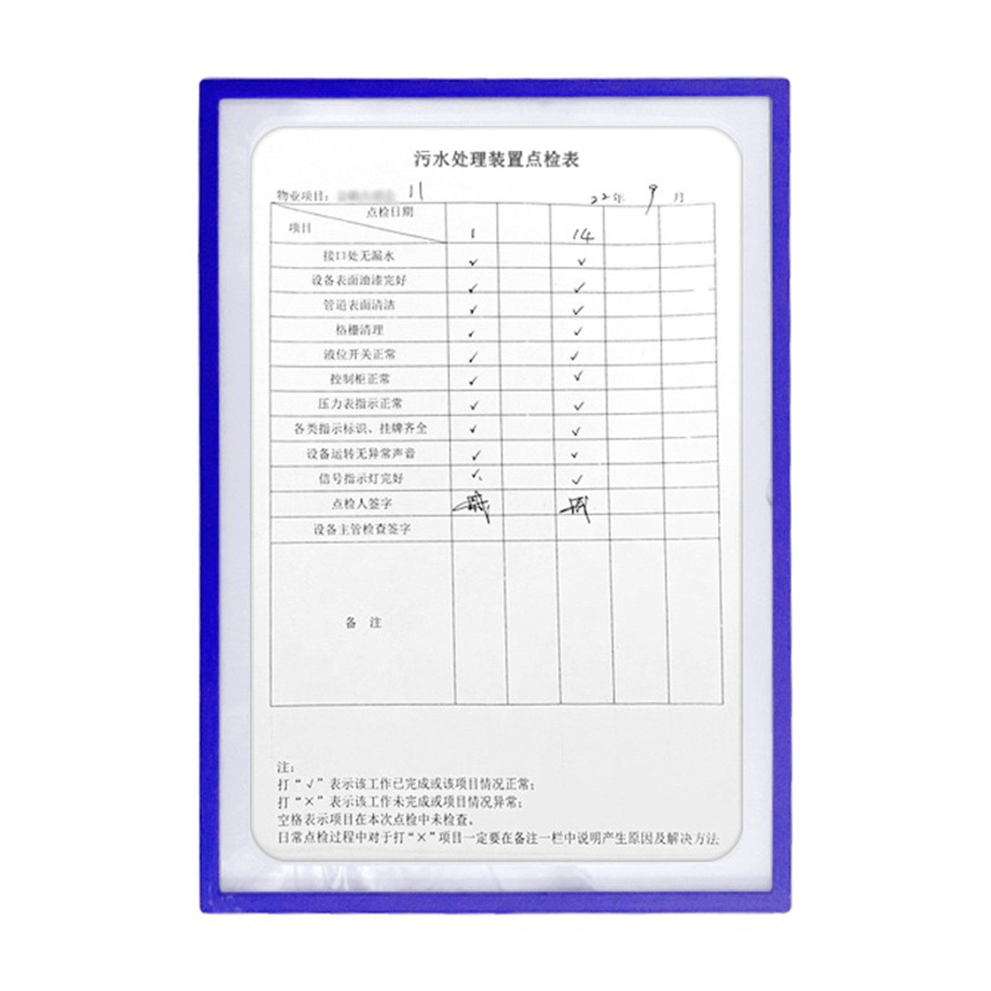 A4镂空文件夹工厂车间巡场点检表磁性设备点检表保护硬胶套卡K士