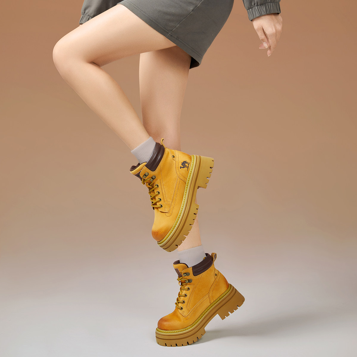 骆驼马丁靴秋冬登山鞋户外靴子厚底短靴工装靴大黄靴女鞋