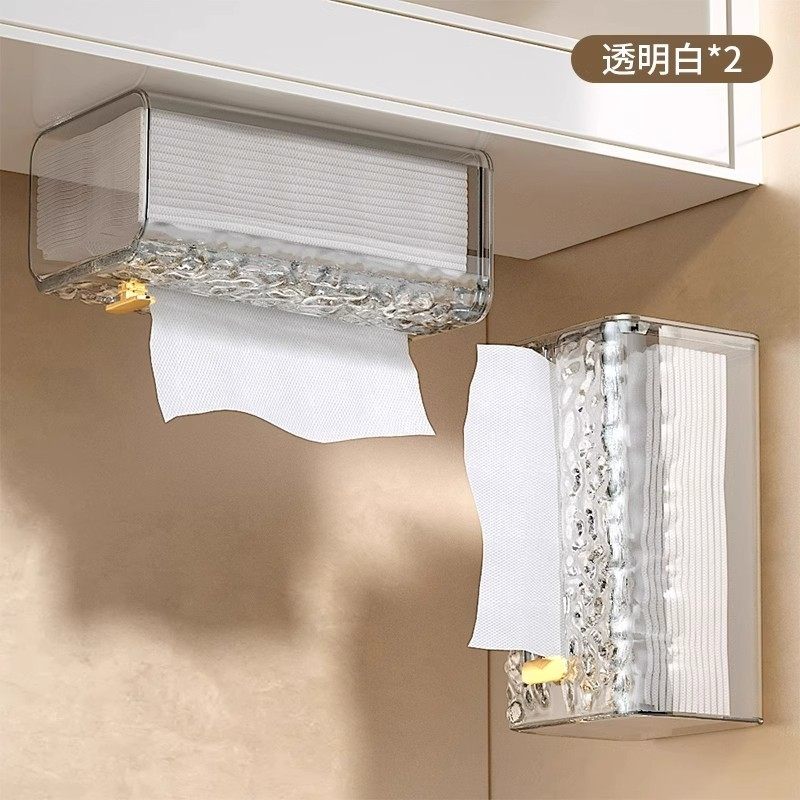 冰川纹洗脸巾收纳盒壁挂式纸巾盒家用轻奢风卫生间厨房倒挂抽纸盒