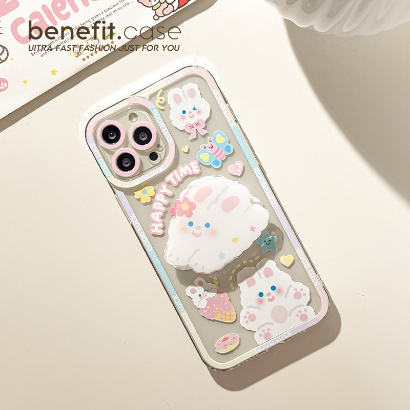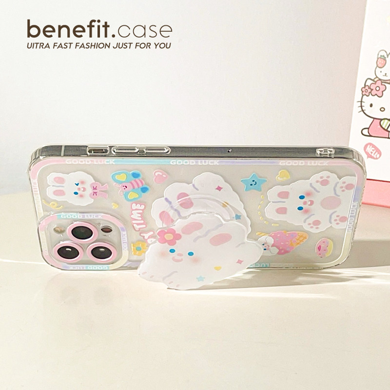benefit棉花糖小兔带支架17pro16适用于iphone15promax苹果15PRO手机壳13新款14套12可爱11透明xsmax硅胶xr防