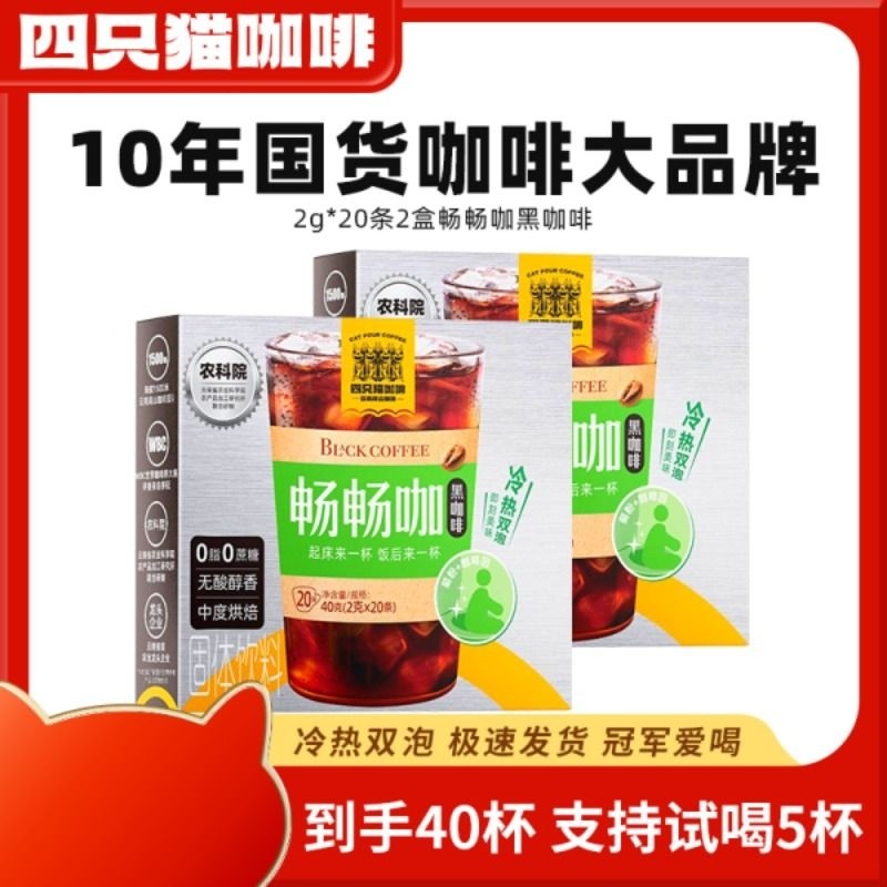 四只猫功效黑咖啡速溶美式冰咖啡燃燃咖20条/盒美美畅畅0脂肪特浓