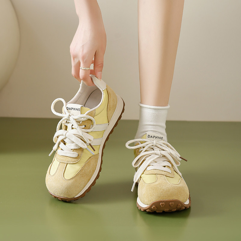 达芙妮内增高黄色德训鞋女2026新款薄款巨好看轻便休闲运动板鞋子