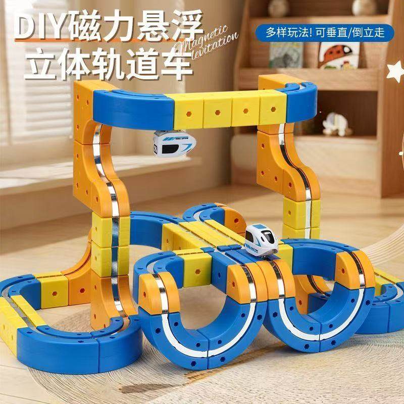 儿童益智电动磁吸力积木轨道车魔幻百变轨道男孩DIY磁性拼装玩具