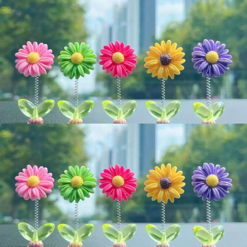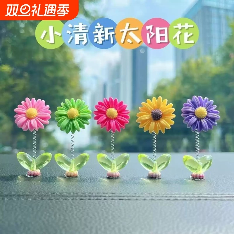 清新太阳花汽车新款摇头彩色创意太阳花摆件可爱花朵中控台装饰