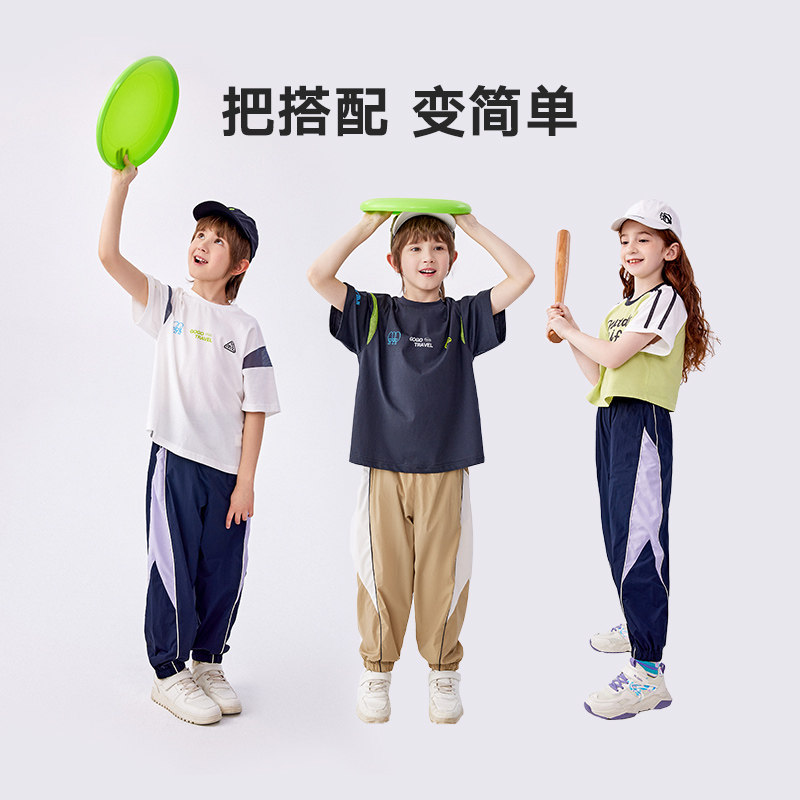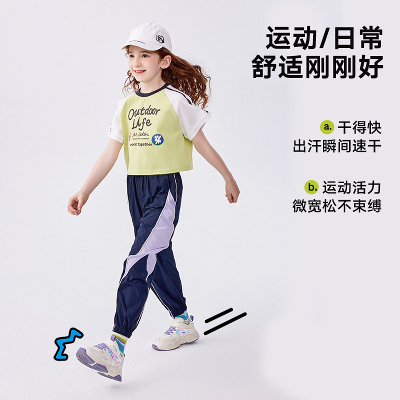 马拉丁童装儿童裤子夏装新款男童女童大童拼色速干撞色梭织长裤