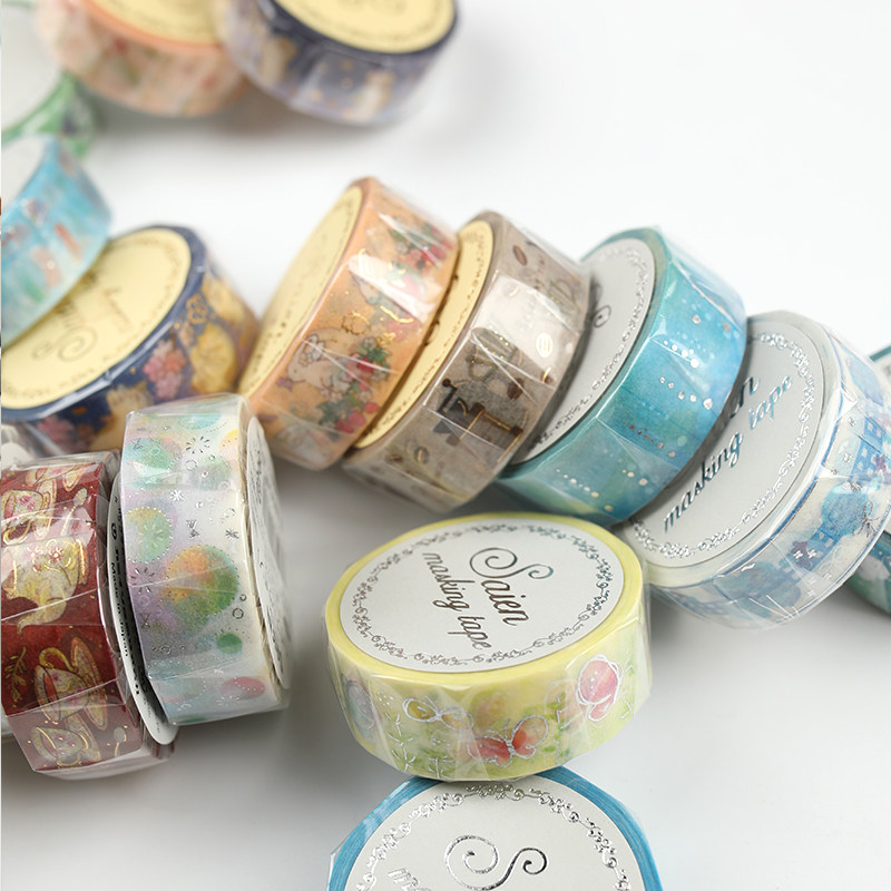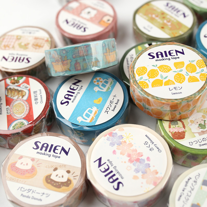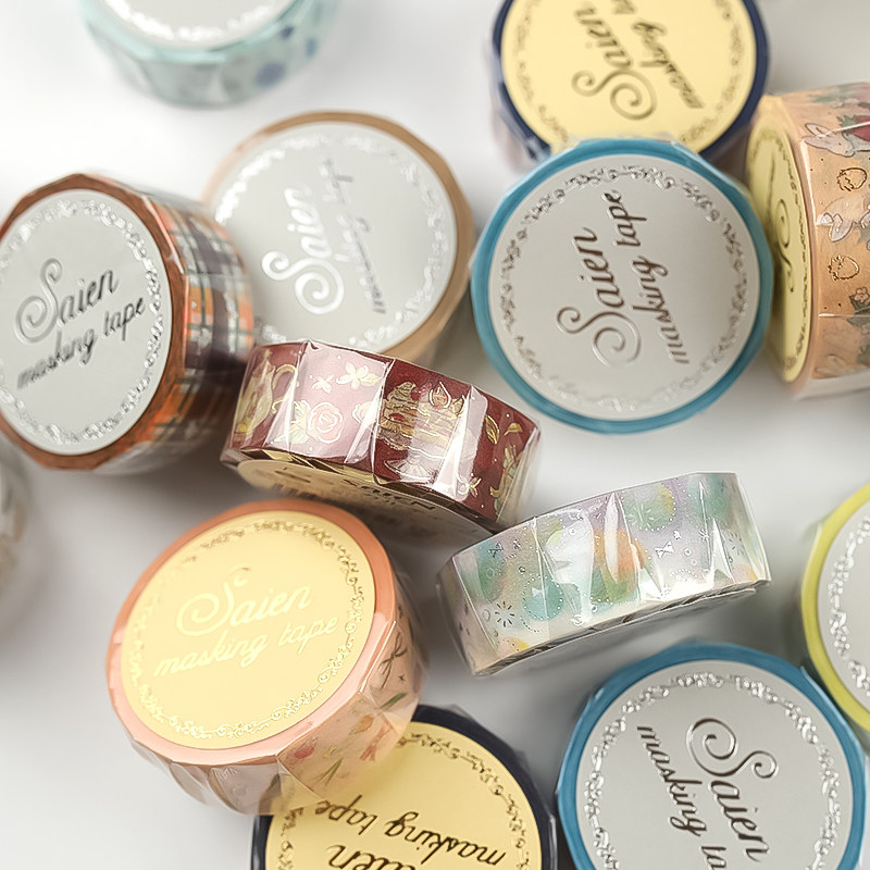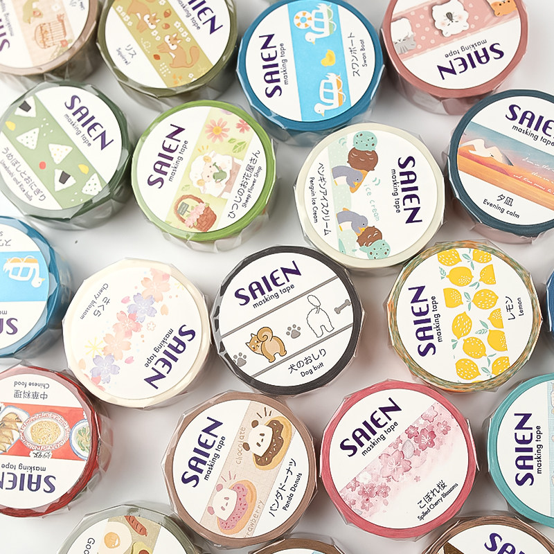 日本SAIEN和纸胶带金箔银箔草莓雨滴风铃手帐胶带拼贴冰淇淋 整卷