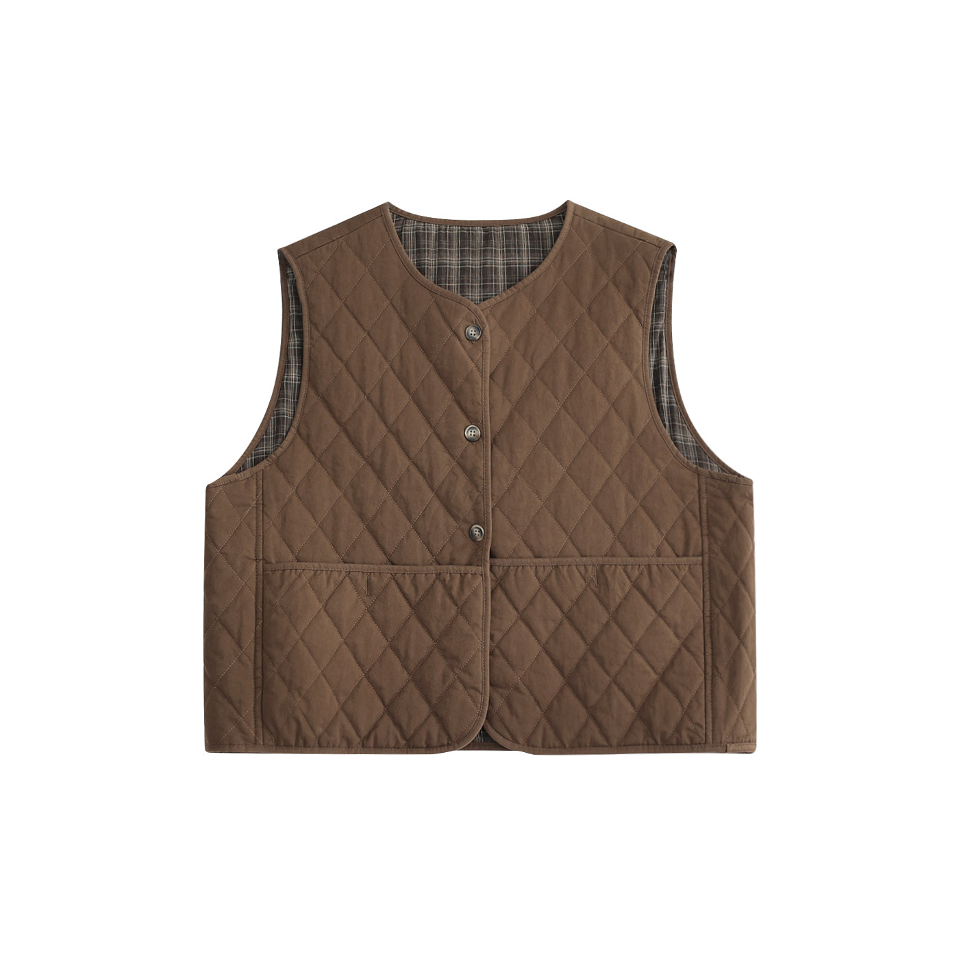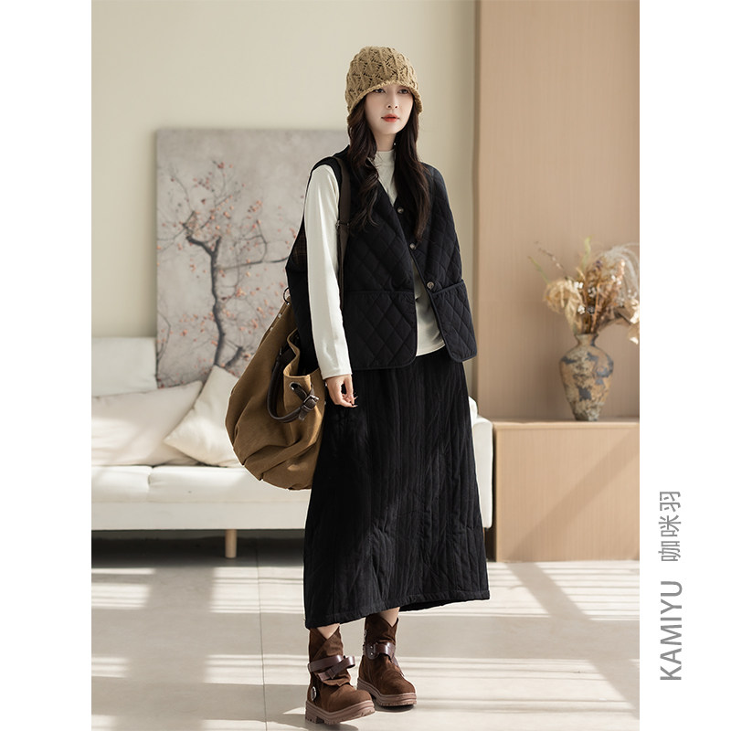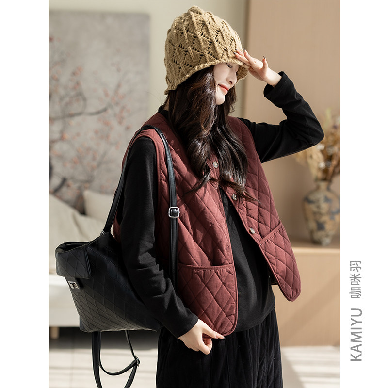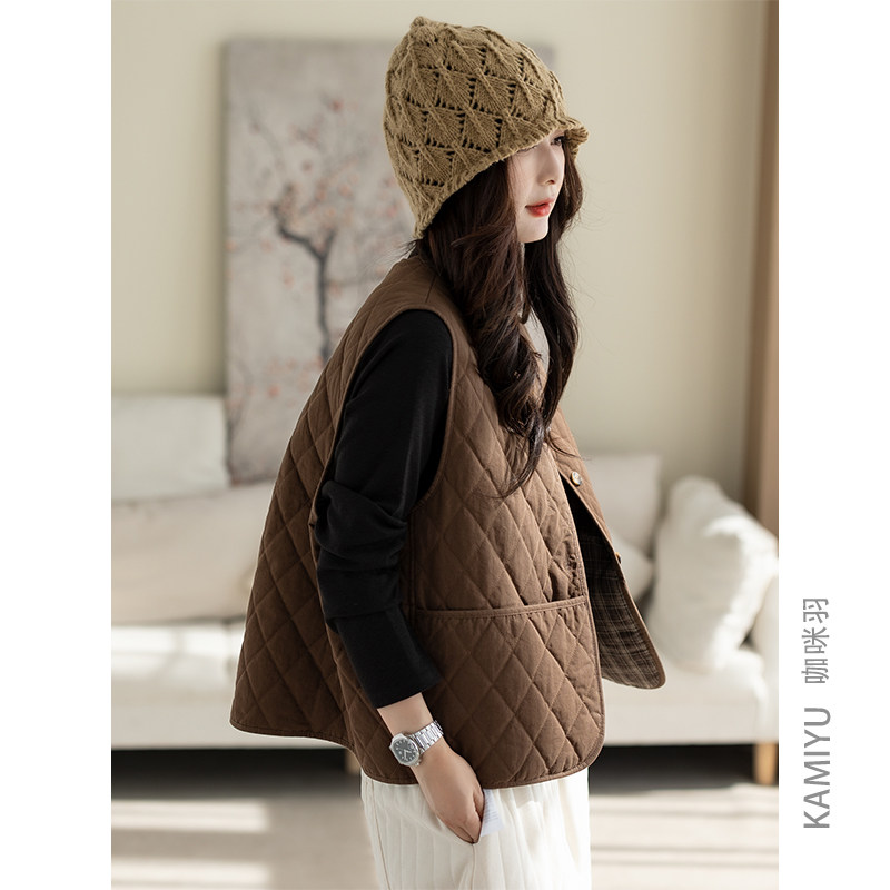 咖咪羽100%棉马甲女秋冬新款无袖女士坎肩复古宽松女装外套马夹女
