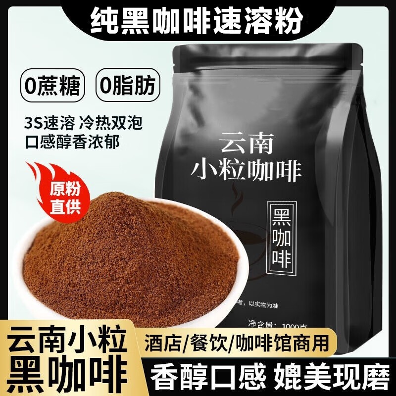 农科院云南小粒纯黑咖啡粉无添加0蔗糖0脂冷热速溶美式黑咖啡袋装