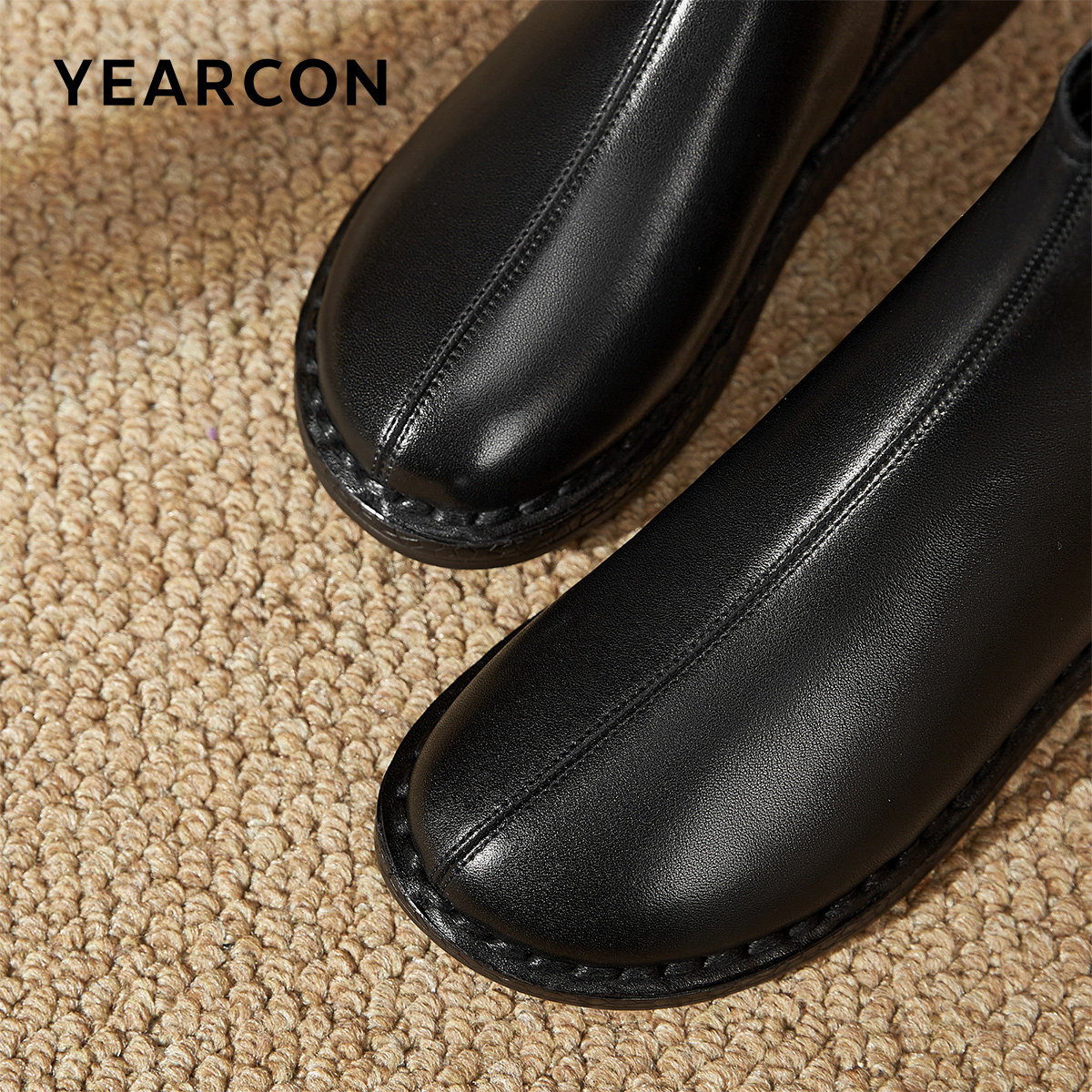 牛皮版~内增高复古短靴女2025秋冬西部马丁靴圆头短筒勃肯堆堆靴