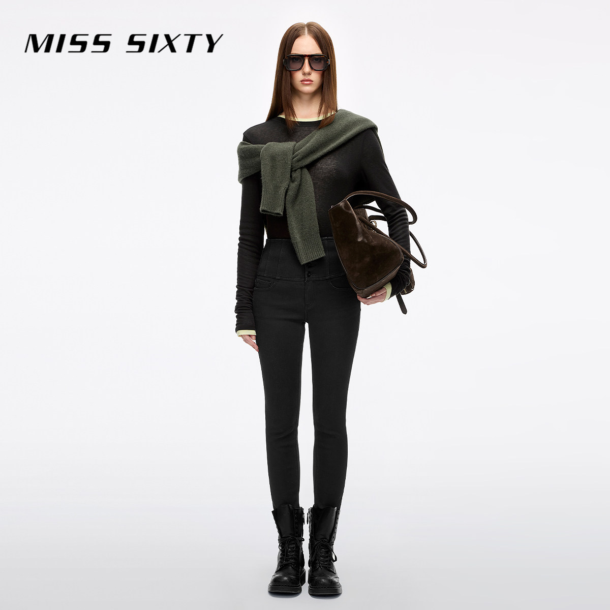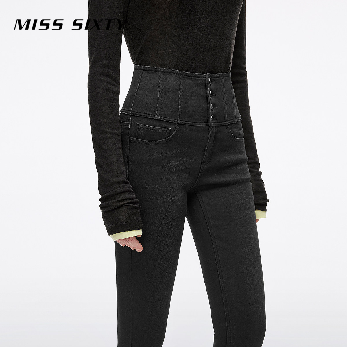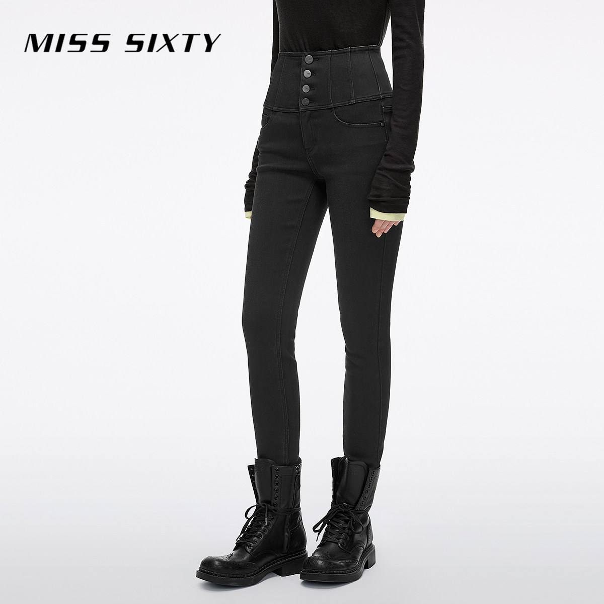 【保暖复合绒】Miss Sixty2025冬季新款牛仔裤女四扣加厚小脚靴裤