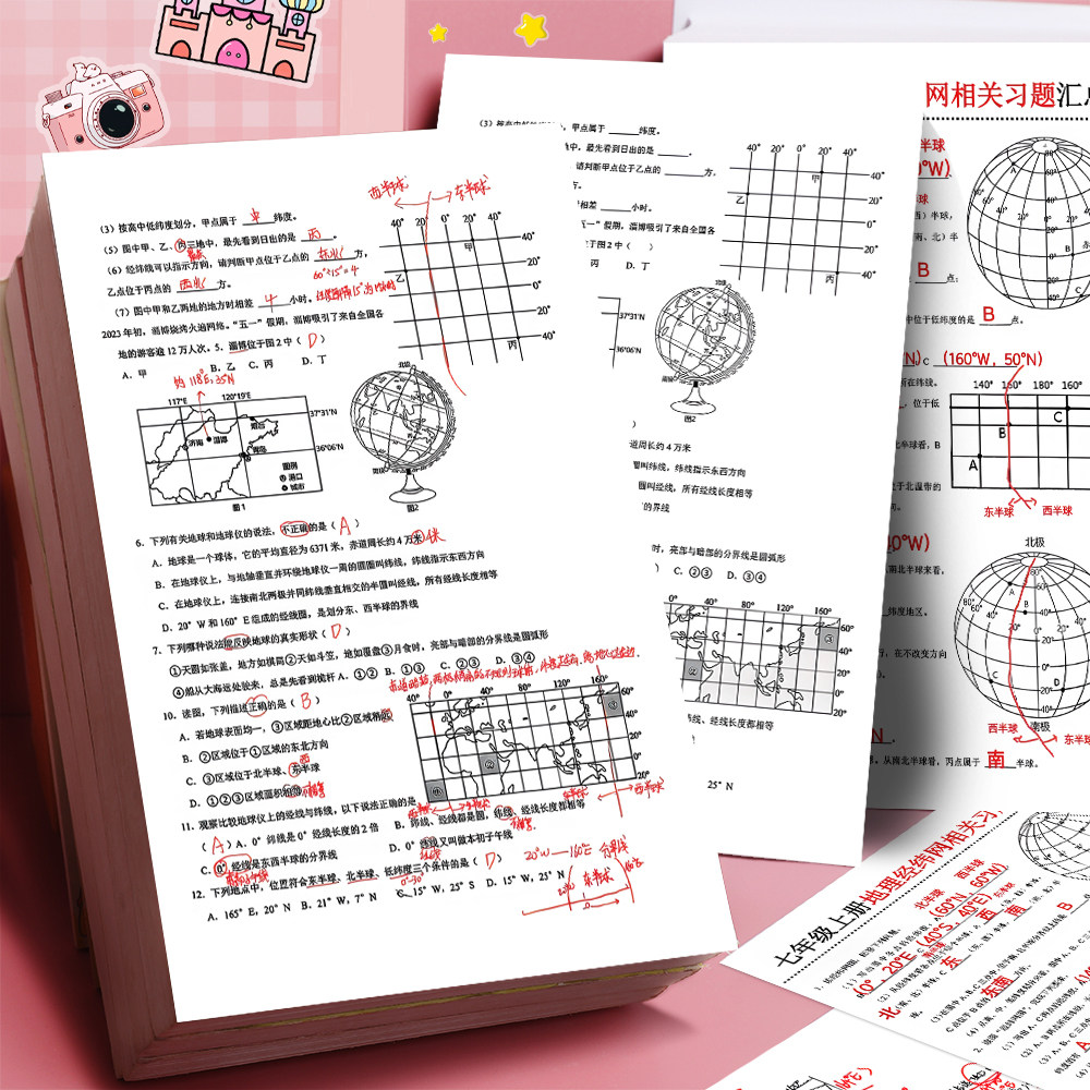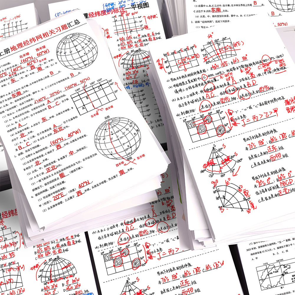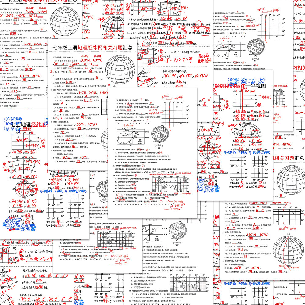 七年级上册地理经纬网相关题型汇总易错常考题知识点解析贴纸