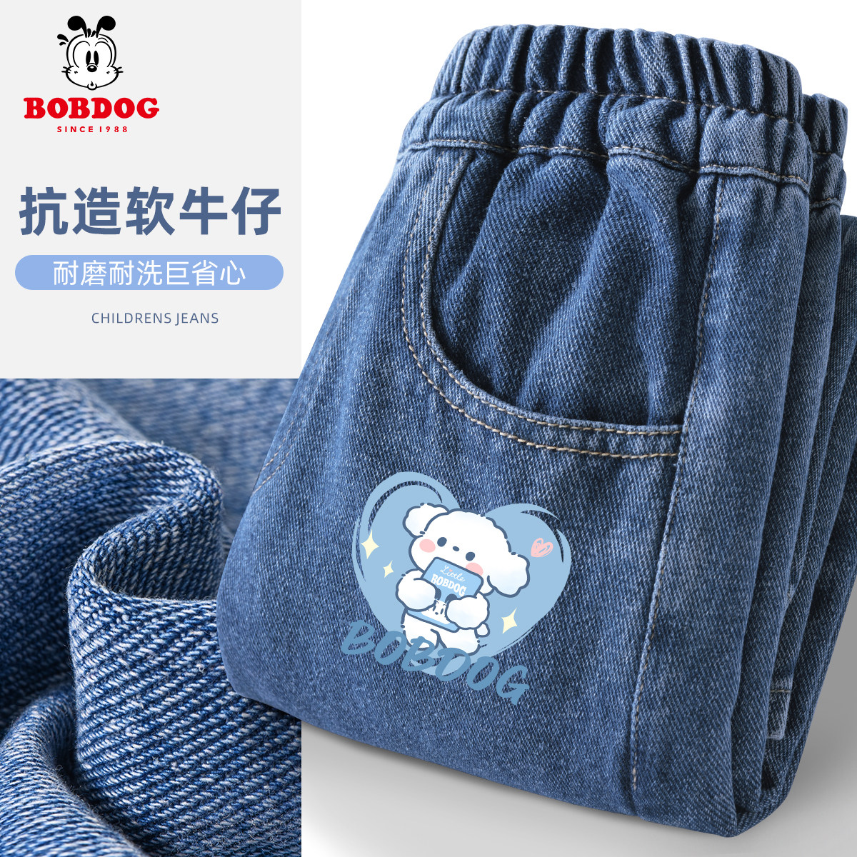 巴布豆女童裤子春秋新款牛仔裤女孩衣服秋季潮流直筒长裤儿童秋装