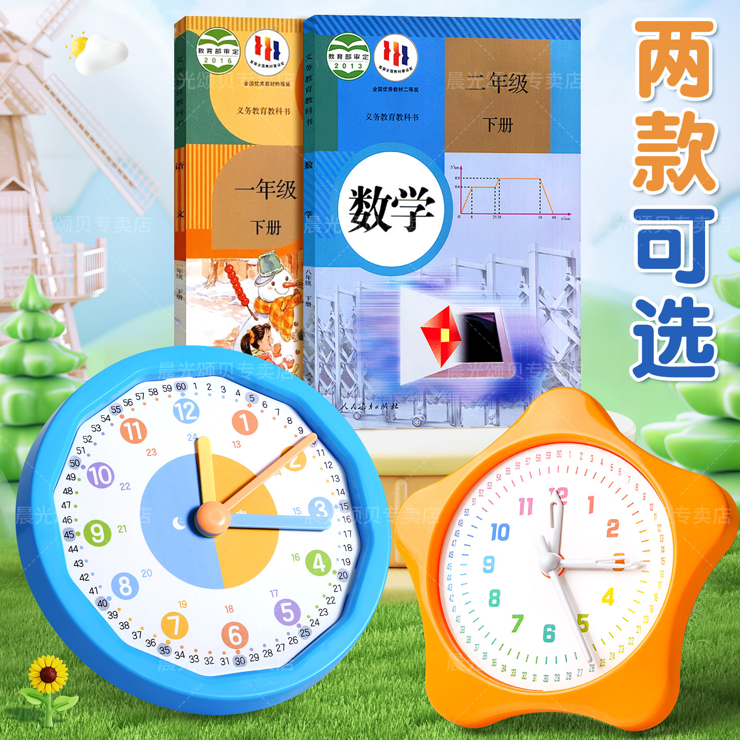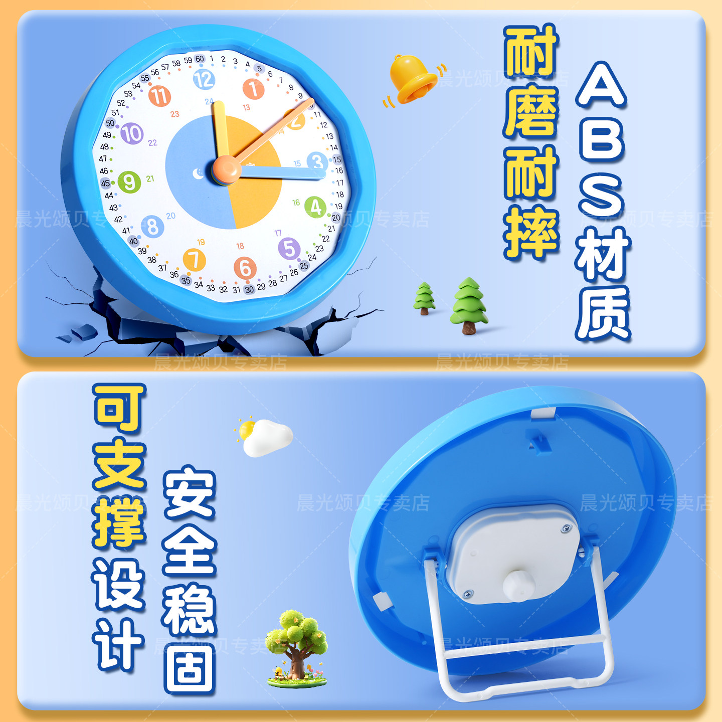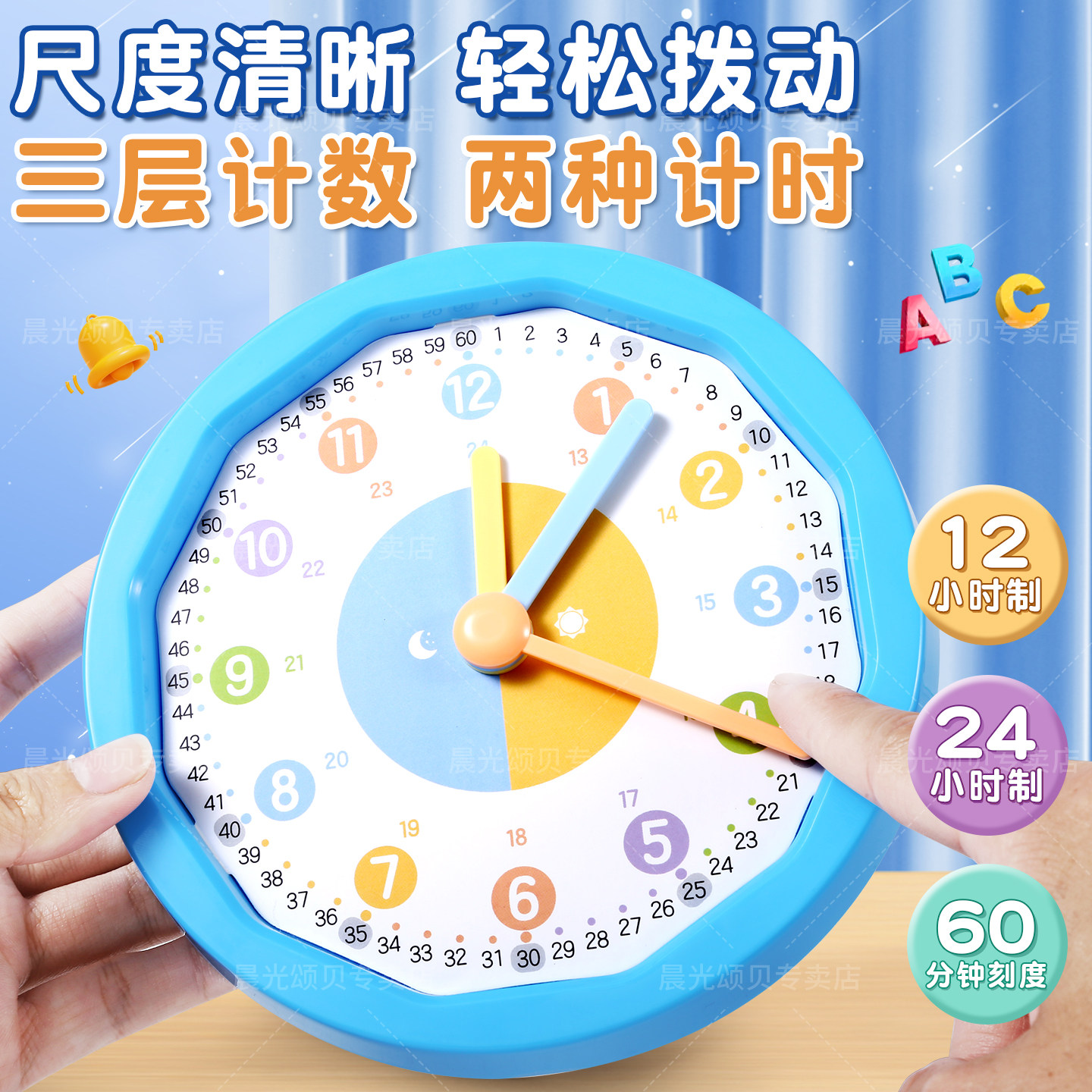晨光钟表模型小学生教具一二年级小学生学习认识时间12/24小时三针联动数学时钟教具钟面学具儿童专用学习钟