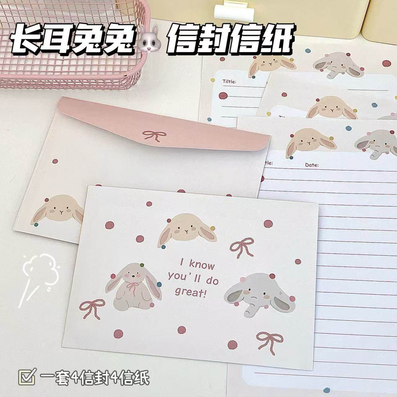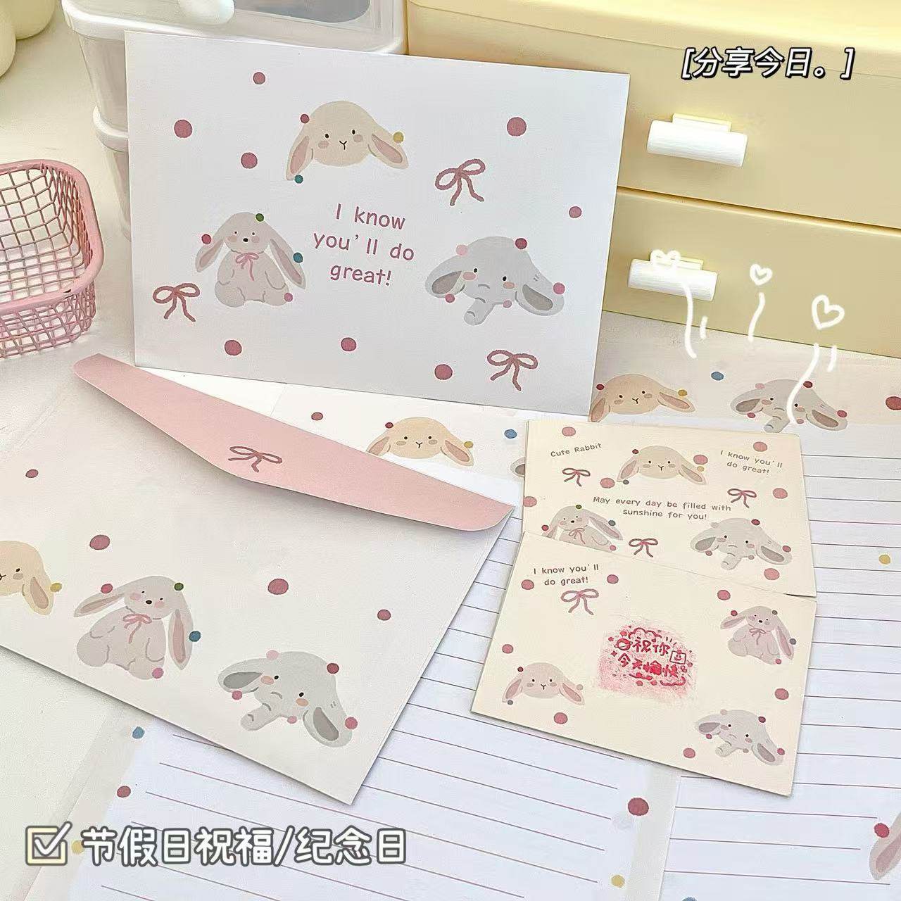 高颜值长耳兔兔信封信纸留言卡套装送礼节日创意可爱手写祝福贺卡