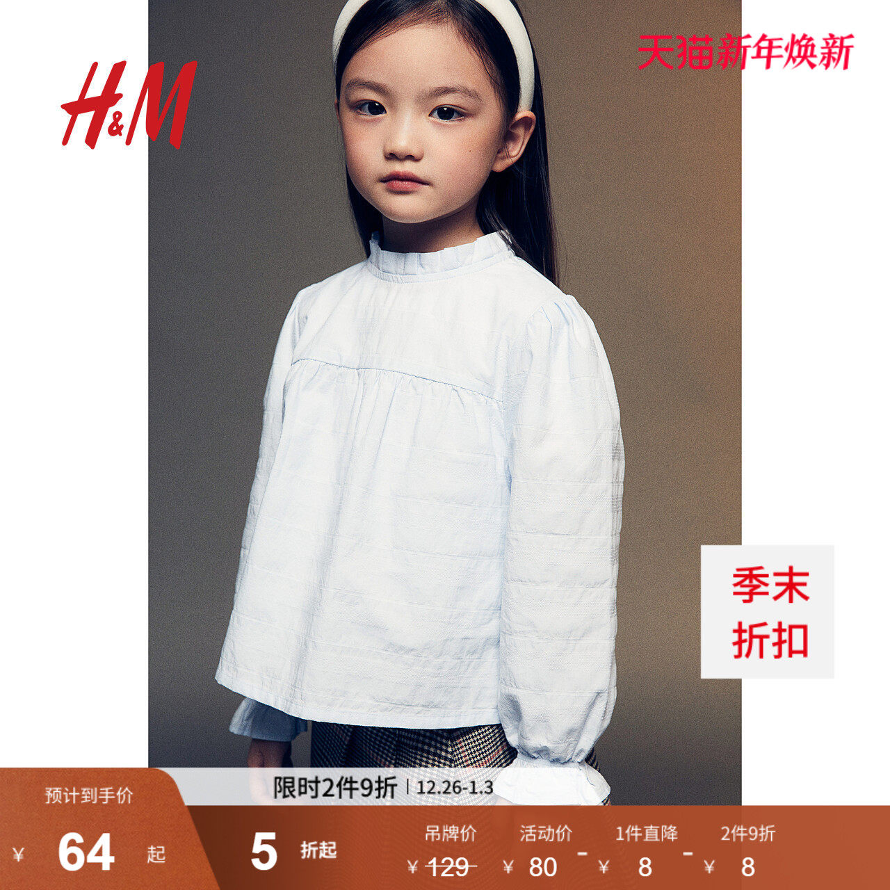 HM童装儿童女童衬衫冬时尚宽松提花梭织圆领泡泡长袖上衣1257013