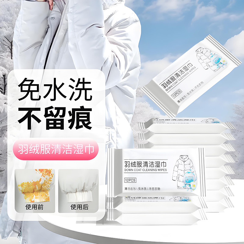 羽绒服清洁湿巾免洗强力去渍衣物去污冲锋衣干洗湿纸巾免水洗便携