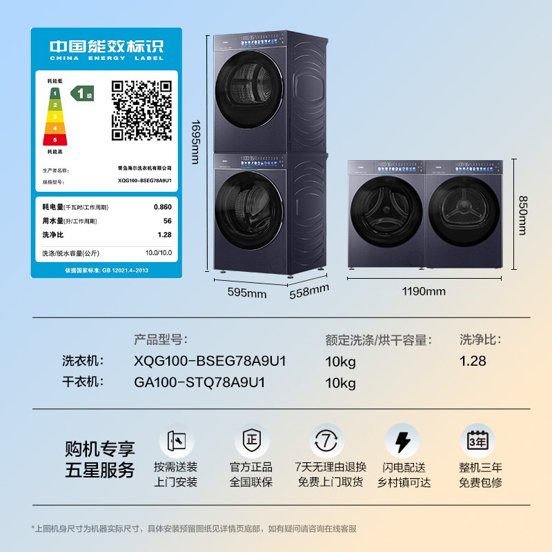 [国补20%]海尔洗烘套装天悦78A9直驱滚筒洗衣机10kg热泵烘干机77E