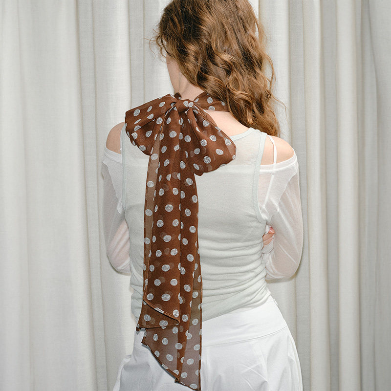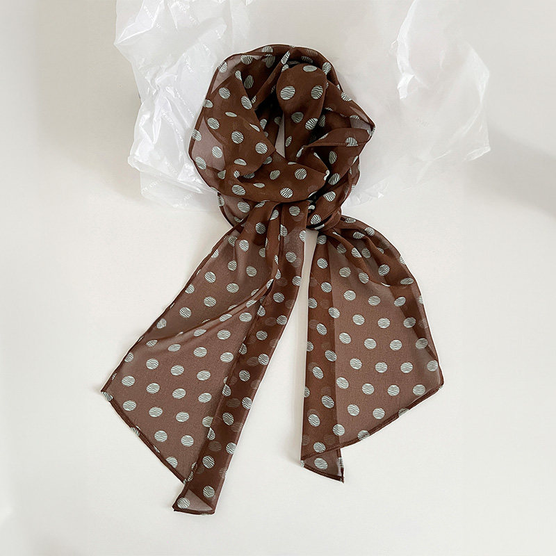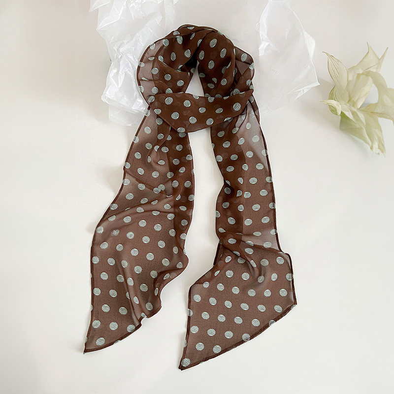 棕色波点丝巾印花高级百搭配饰系脖女2025年新款发带绑发长条围巾