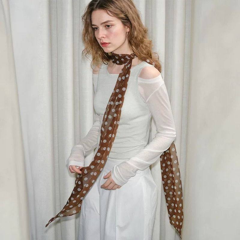 棕色波点丝巾女2025新款高级感百搭法式系脖长条围巾薄款发带大气
