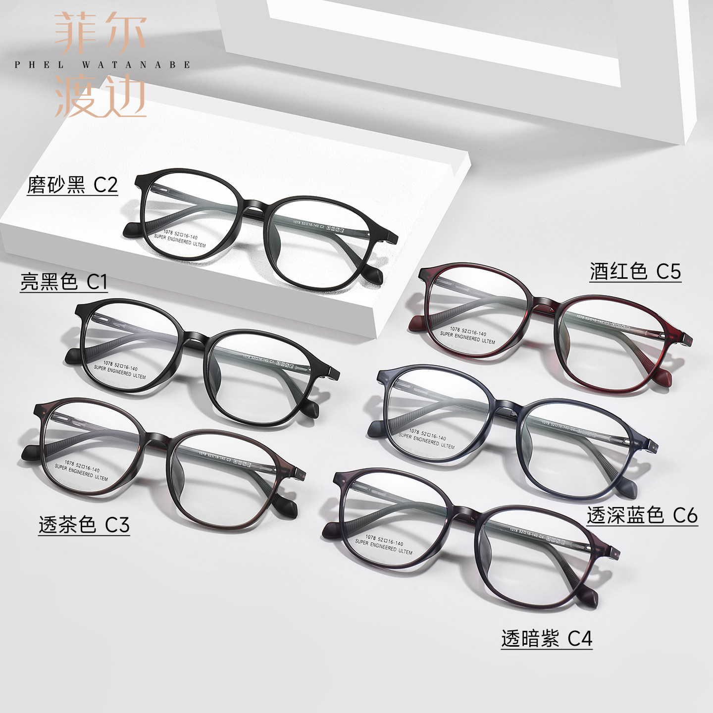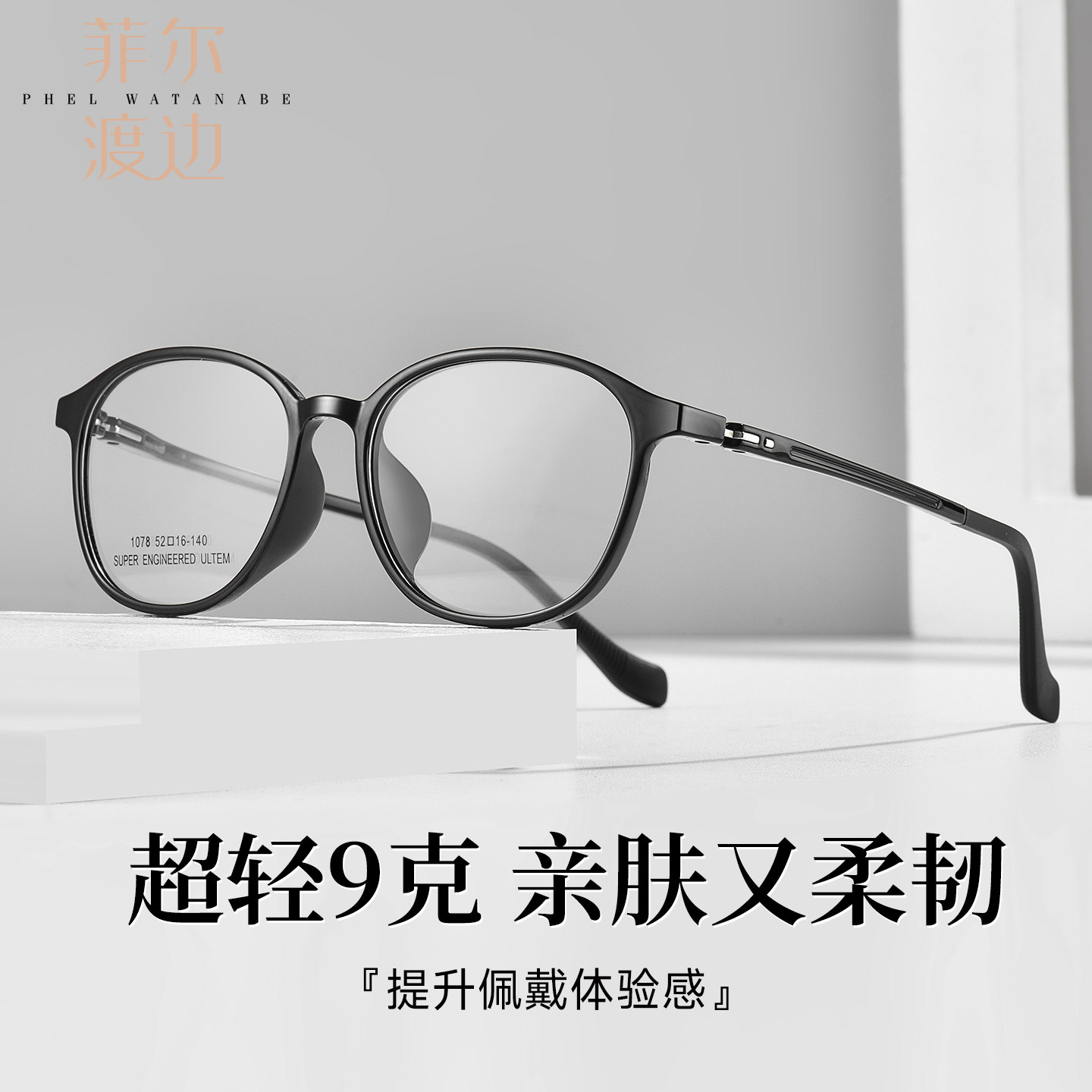 菲尔渡边超轻钨碳近视眼镜架女韩系红色素颜方圆脸眼睛架男D1078