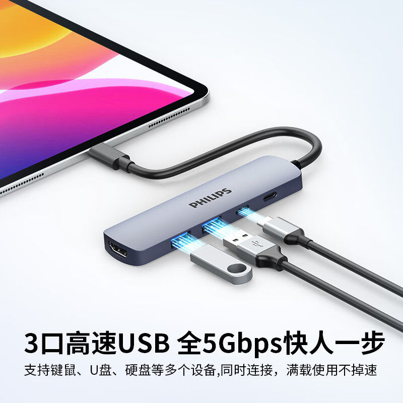 飞利浦macbook拓展坞typec转接头hdmi投屏转换网线多接口转接头适用苹果电脑转换头华为雷电笔记本电脑平板